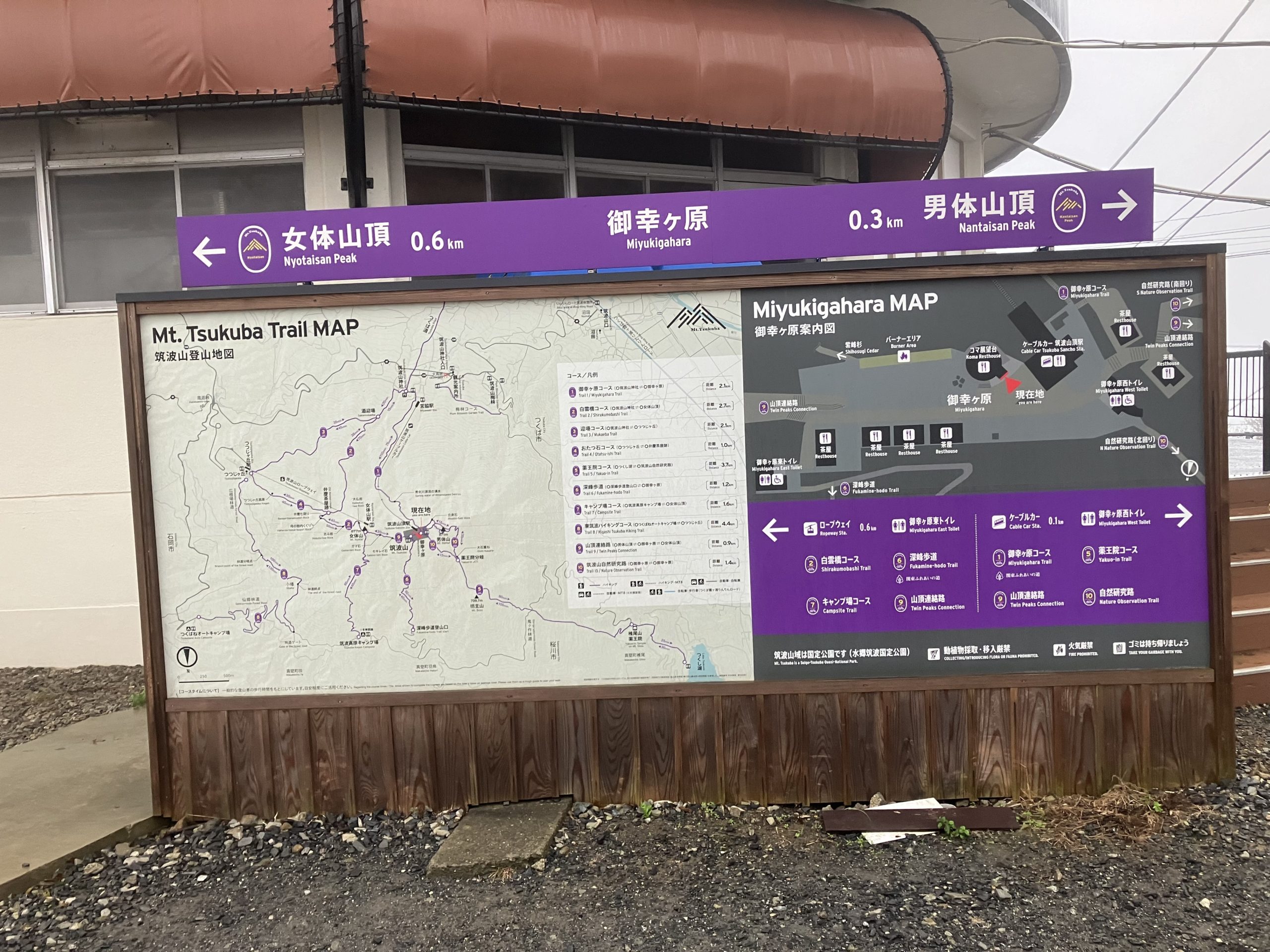 | 筑波山神社一の鳥居(4:07)→筑波山神社(4:23)→宮脇駅(4:29)→中ノ茶屋跡四阿(4:58)→男女川解説板(5:15)→御幸ヶ原(5:38)→筑波男体山(5:51)→御幸ヶ原(6:00)→せきれい茶屋(6:07)→筑波山(6:16)→弁慶茶屋跡(6:42)→迎場分岐(7:23)→白雲橋登山口(7:28)→筑波山神社(7:34)→つくば市市営第三駐車場(7:48)→筑波山神社一の鳥居(8:05) 所要時間 3時間56分 累積標高 864m / 865m 距離 8.2m | |