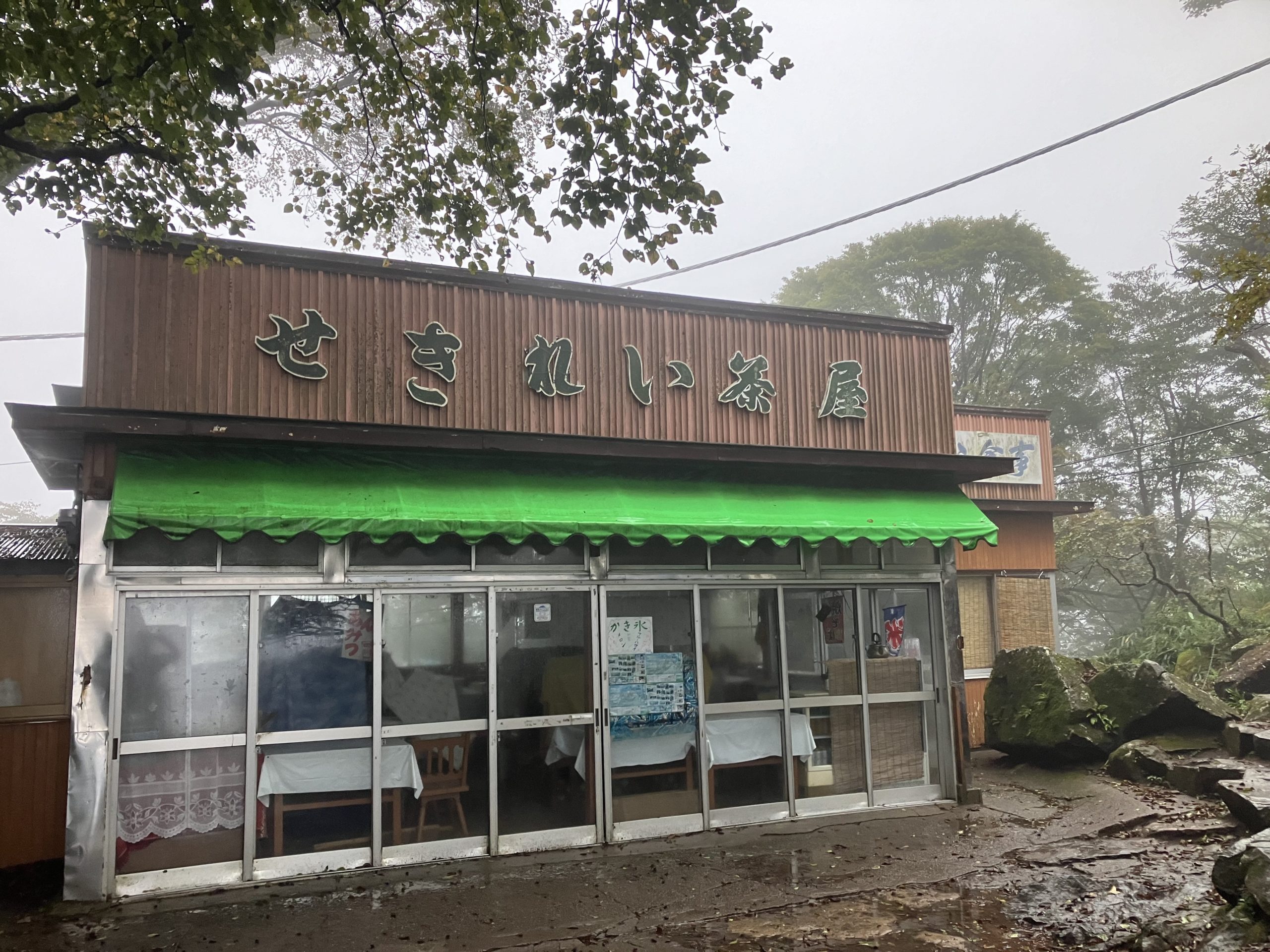 筑波山の山頂近く、女体山から男体山から女体山への山頂連絡路沿いにある茶屋です。