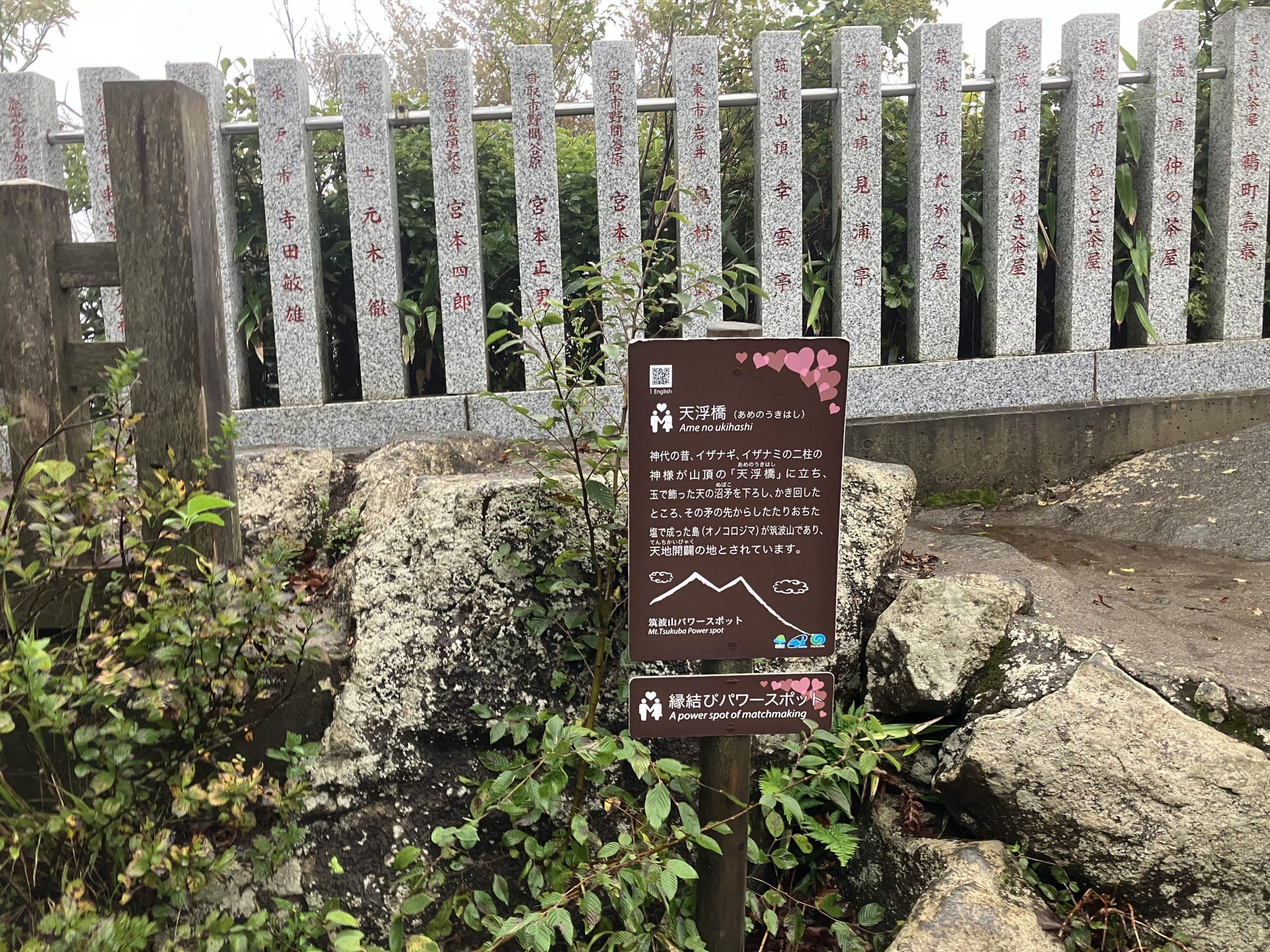 天浮橋は、日本神話によると、天上界と地上をつなぐ橋で、イザナギ、イザナミの両神が降臨したところとされる。 筑波山の天浮橋は、女体山山頂、筑波山神社女体山本殿裏にある。幅1m、長さ3m余りの木製の橋で、女体山頂上風景の象徴となっている。