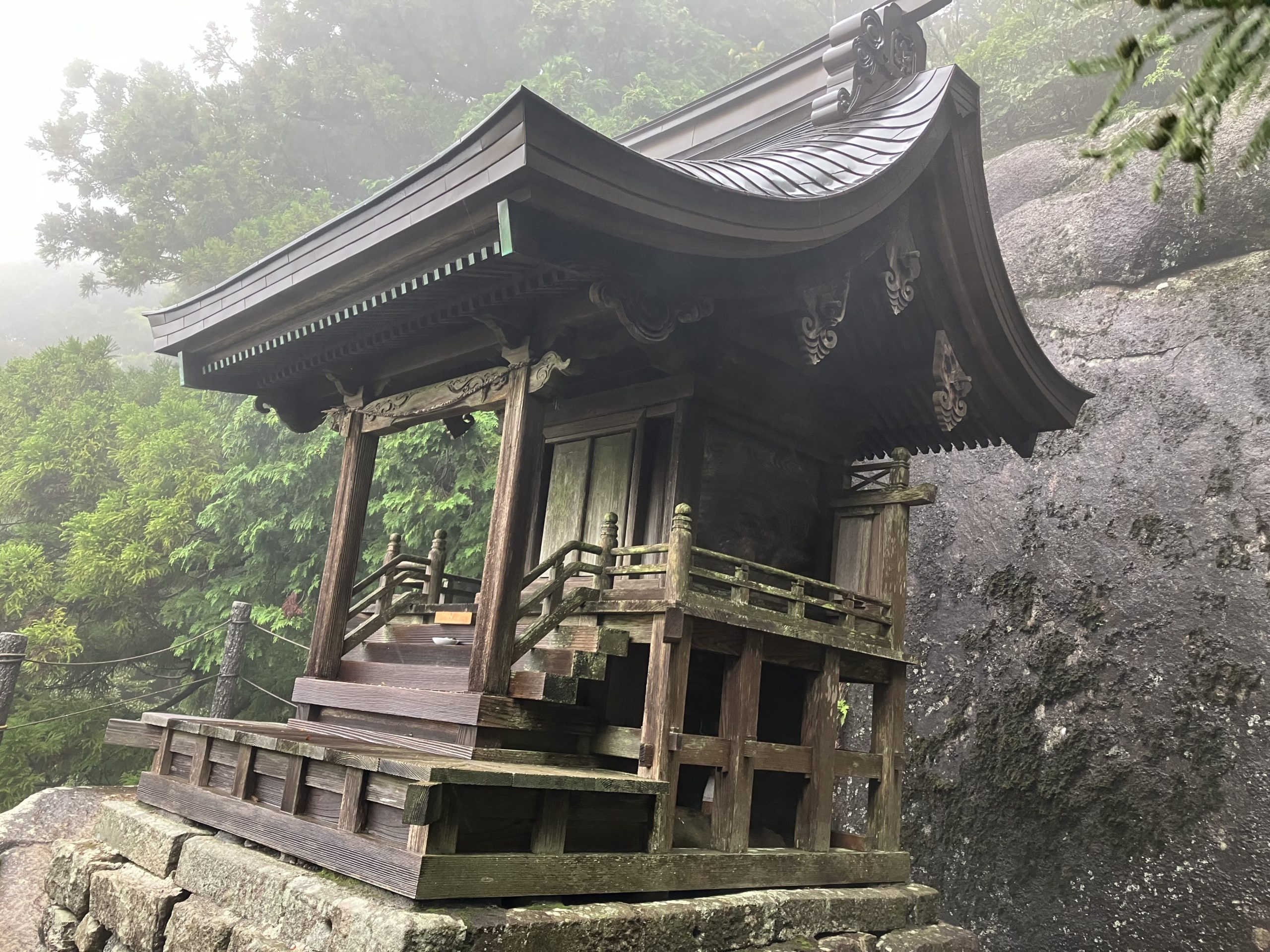 この本社は拝殿だけで、奥の御扉から山頂の両殿を遥拝するという