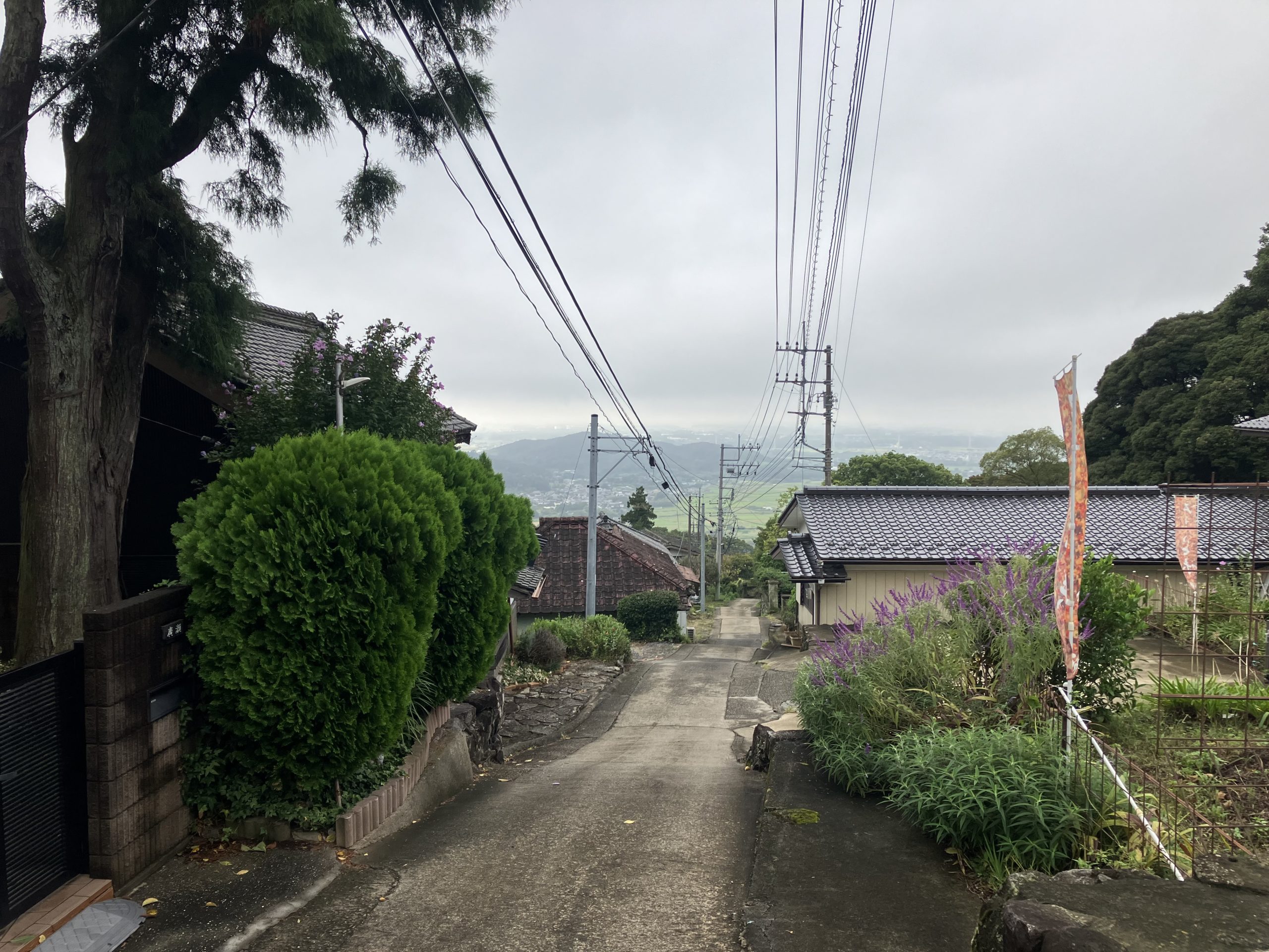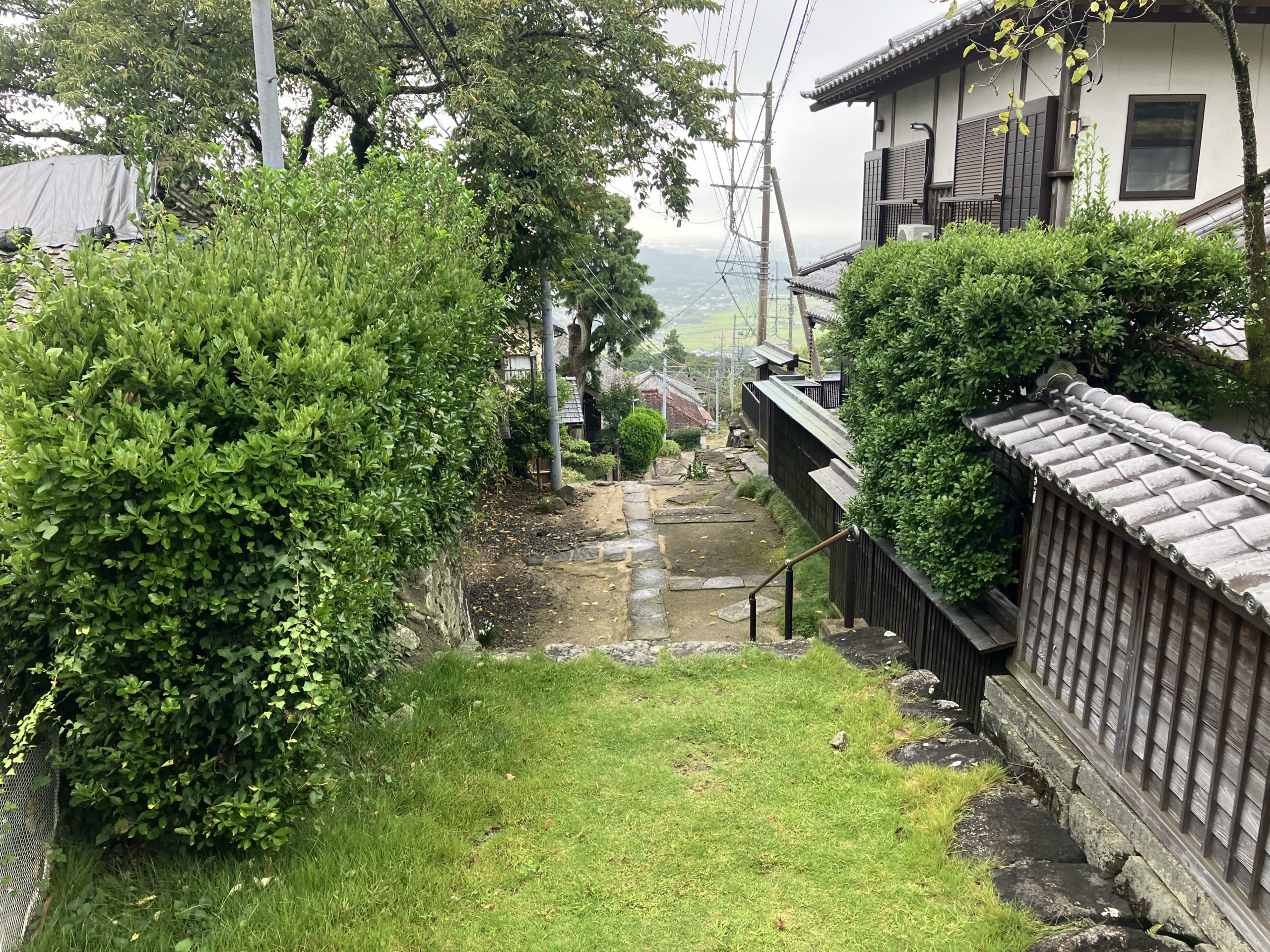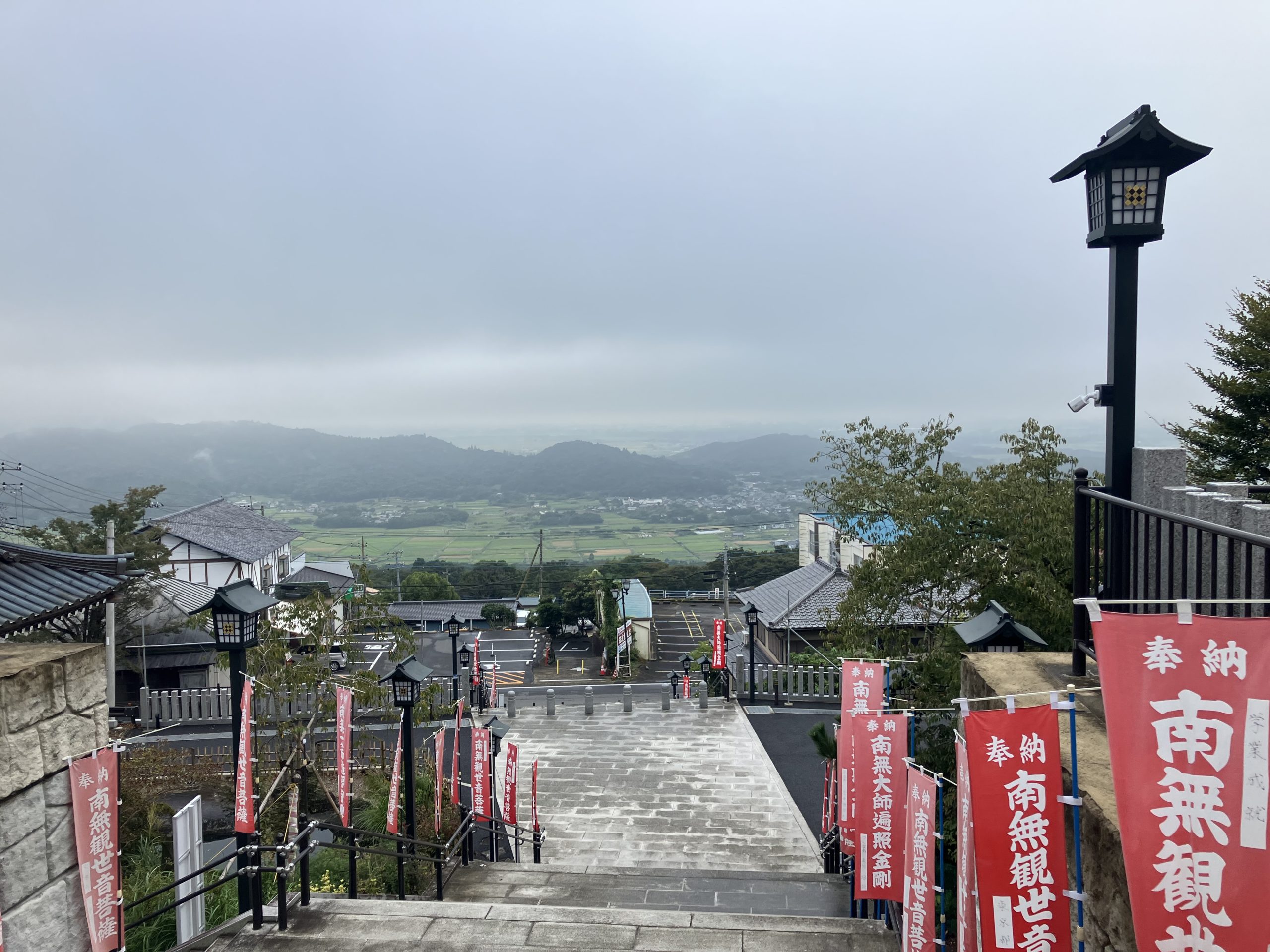 登り途中に振り返れば、眼下に田園風景が広がります。