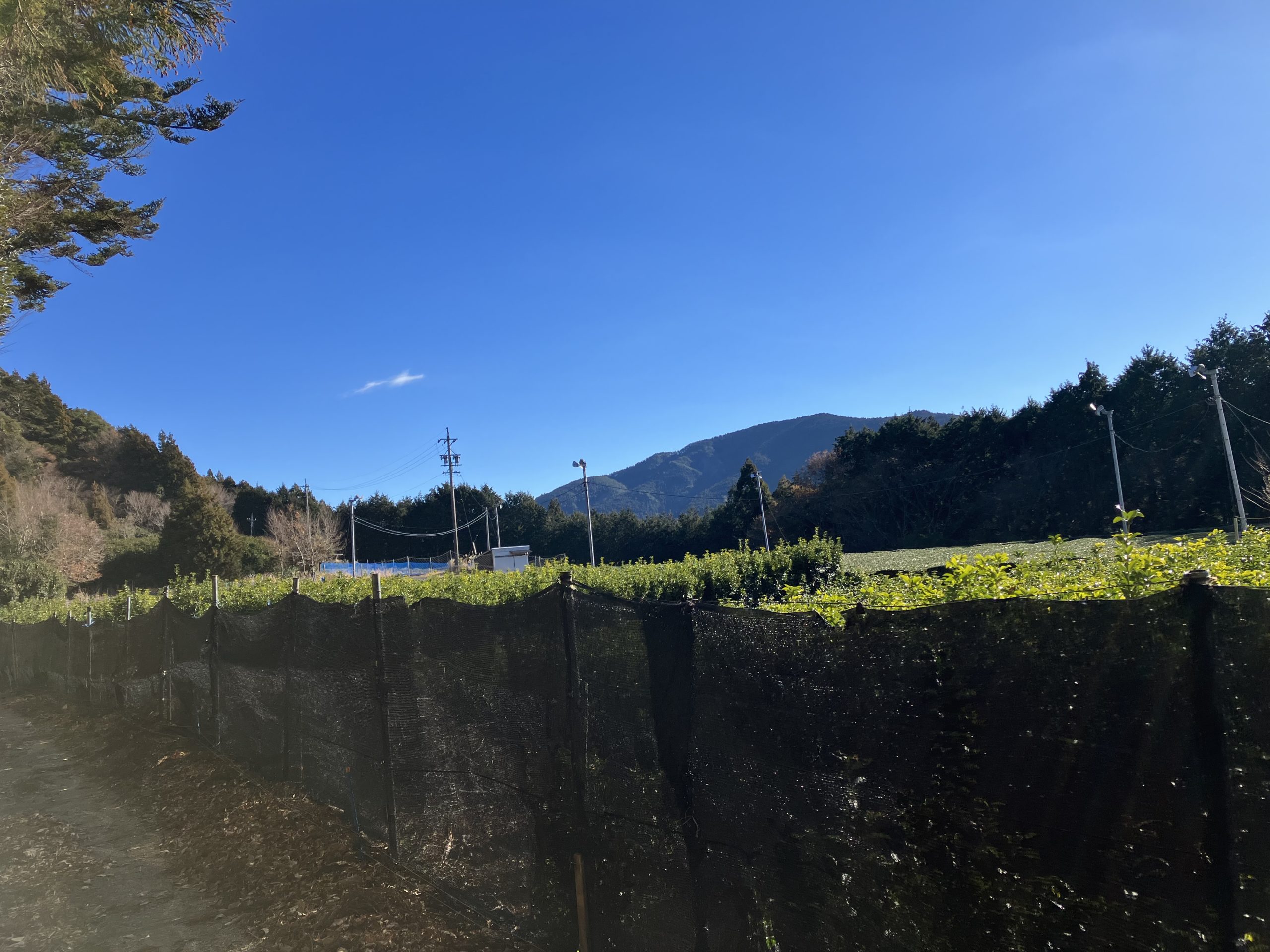 尾根まで登ると、上野平の茶畑が広がっていました。