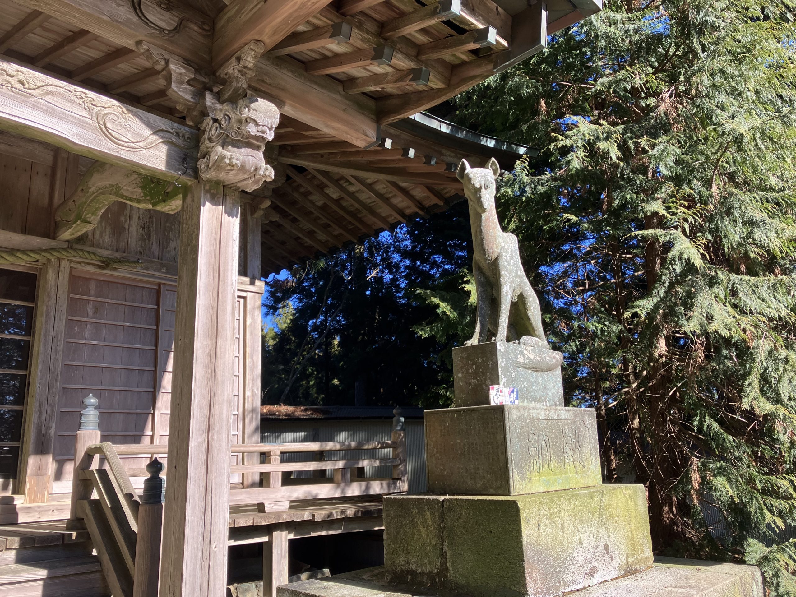 社殿をお守りする役割として、その神社の眷属である山犬が配されています。