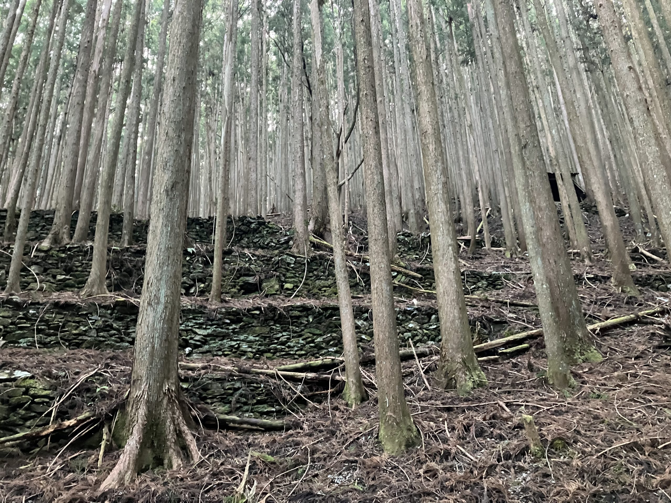 登り始めは緩やかな登り、しばらくすると平和集落跡地が現れます。
