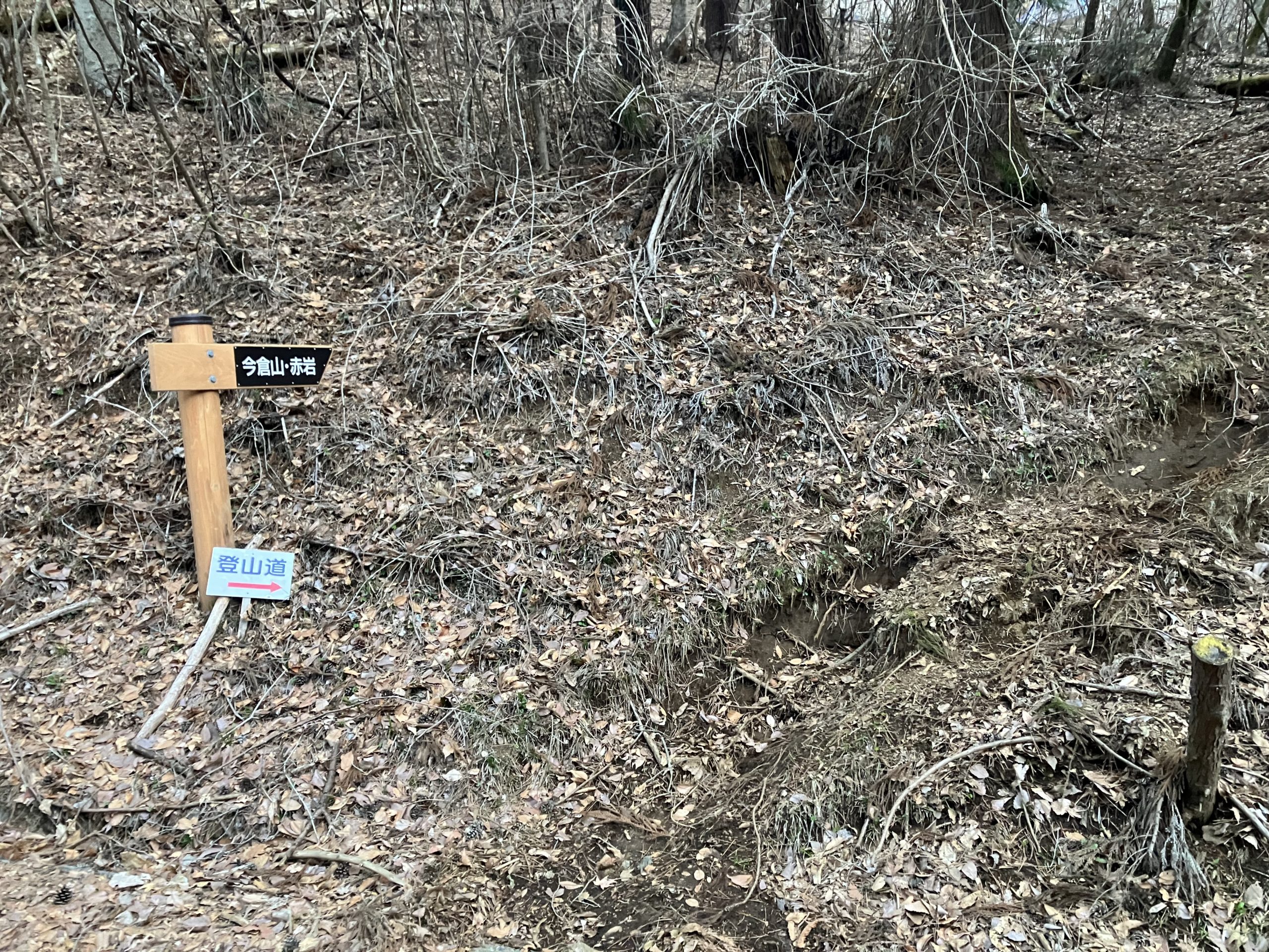 赤岩と御座入山の鞍部、西ヶ原(1381m)に至る登山口