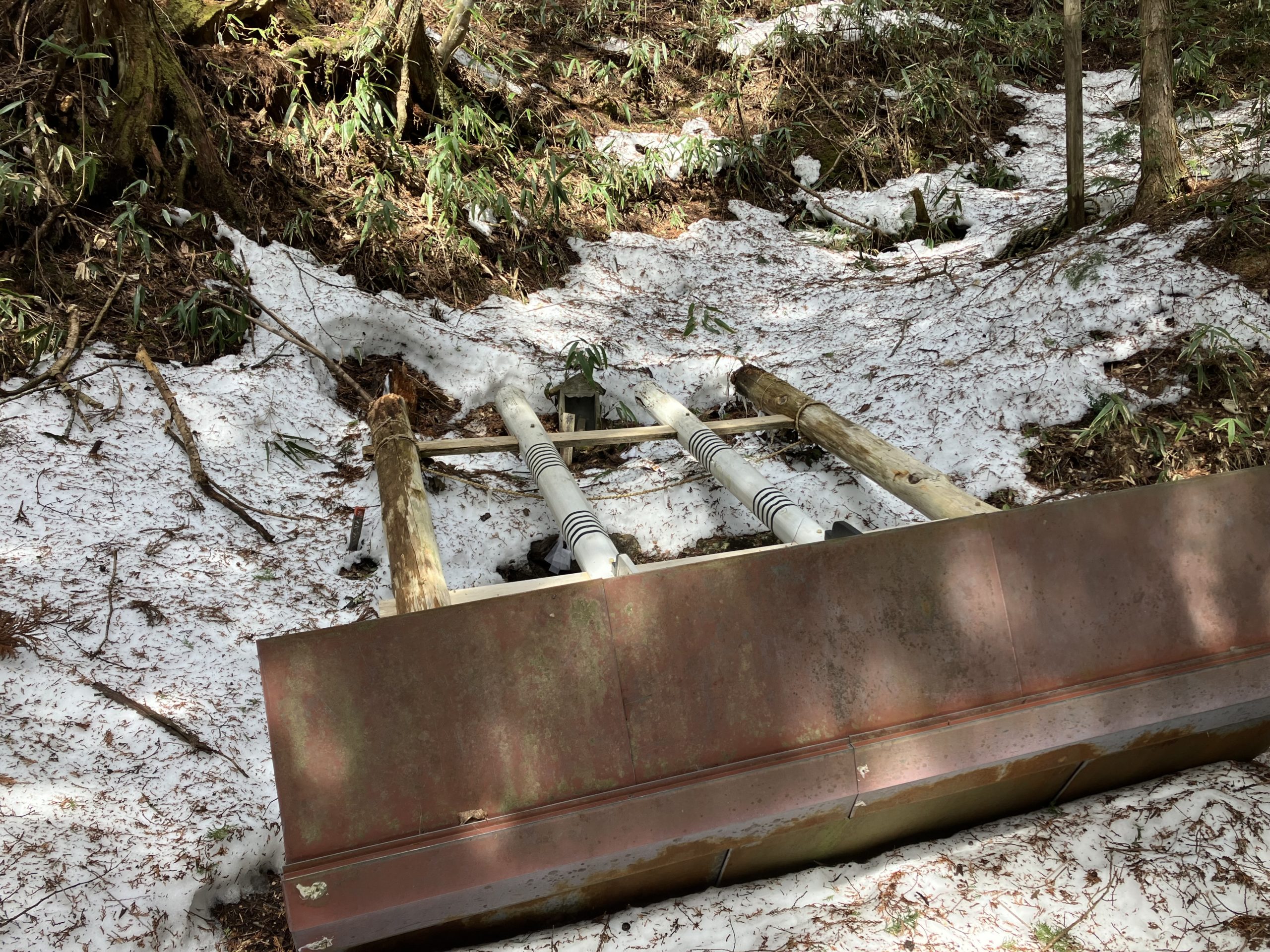 「矢立木」と呼ばれる建物、雪で倒壊しておりました。