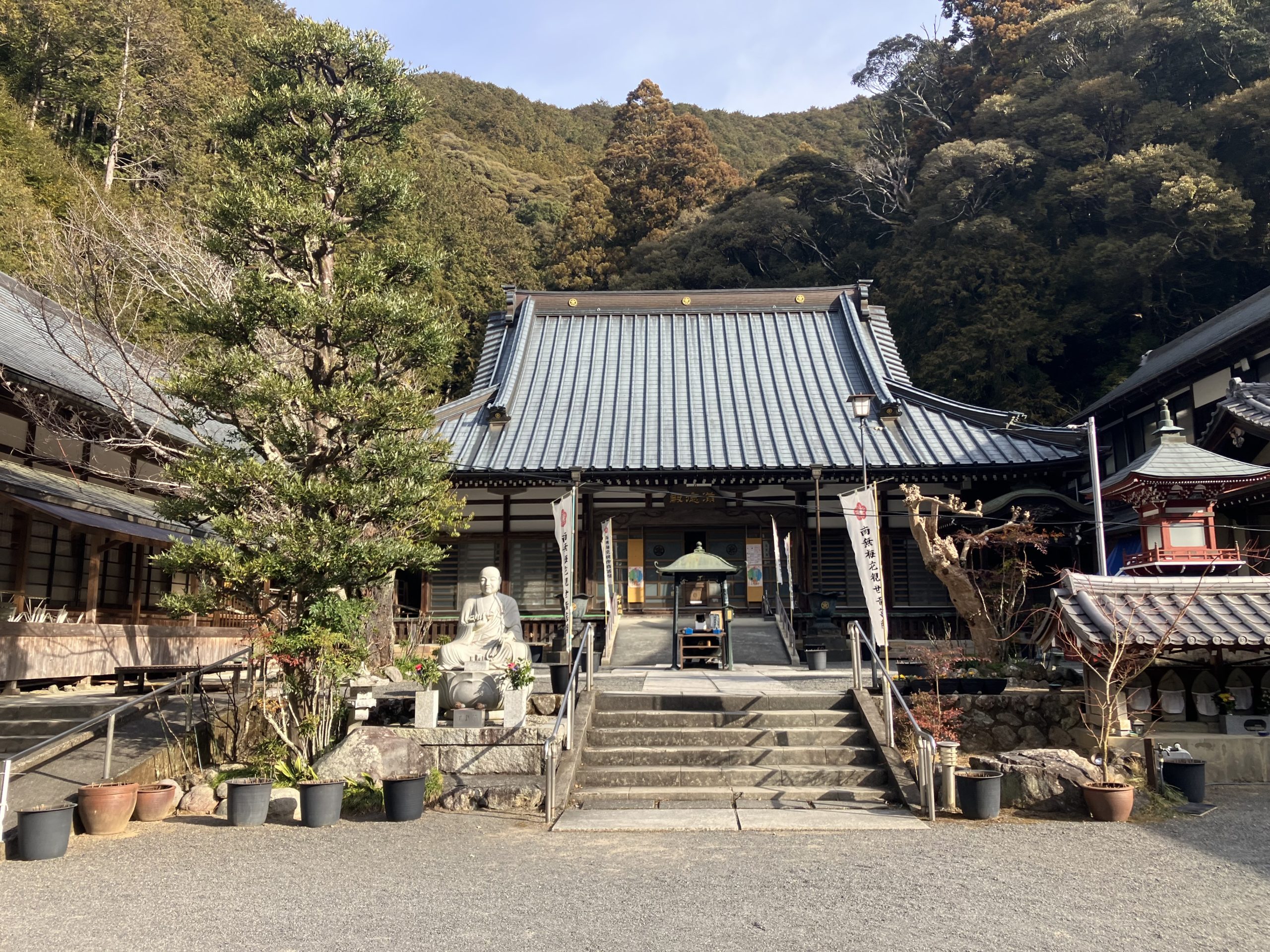 地元では「おとうけんさん」として親しまれており、(仏教の賛美歌)とも言われる詠讃歌の「梅花流発祥之地」としても知られるお寺。