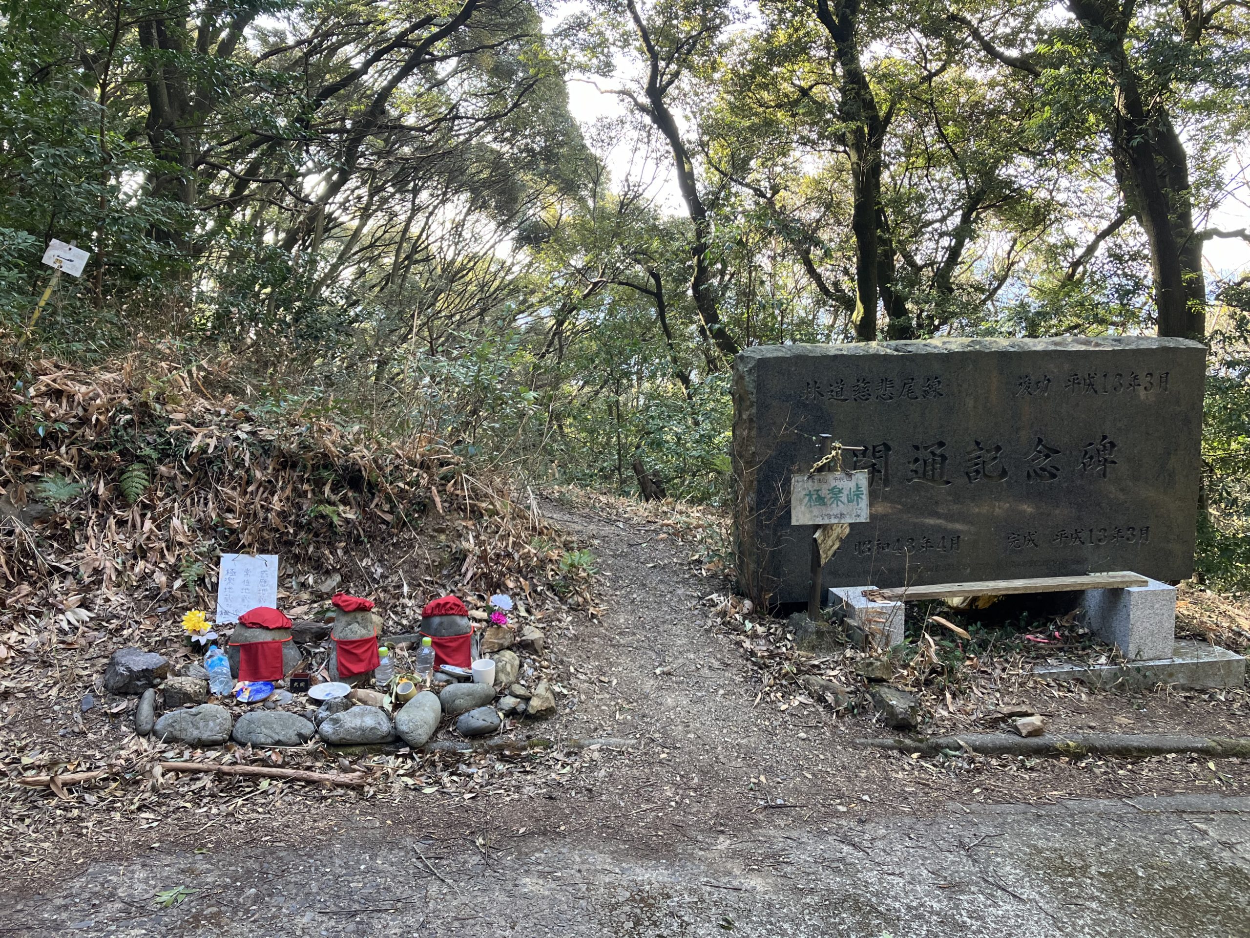 三体のお地蔵様と記念碑の間から再び尾根へ。