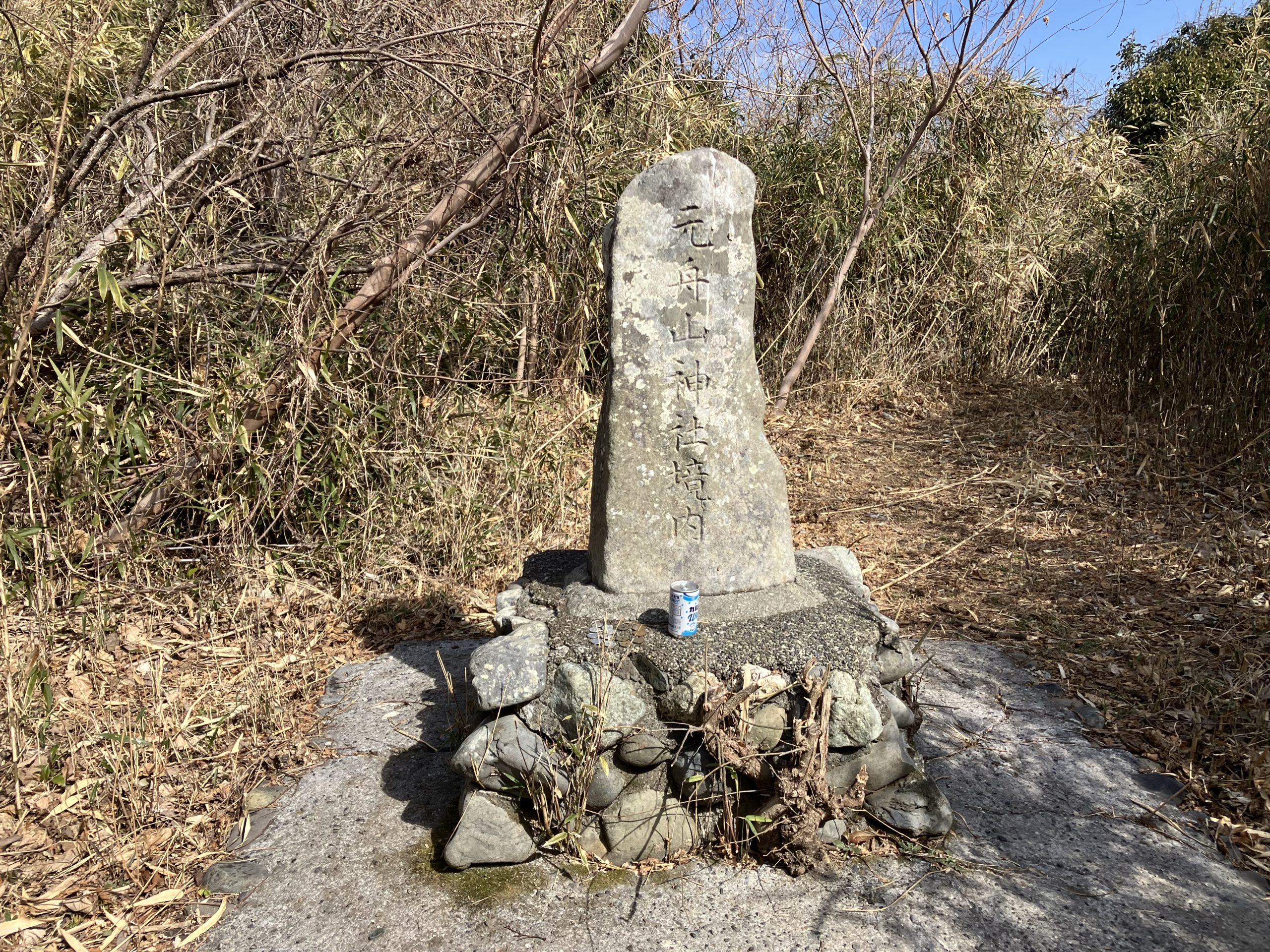 山頂には元船山神社境内の石碑、明治22年に船山神社は神明宮に遷されました。