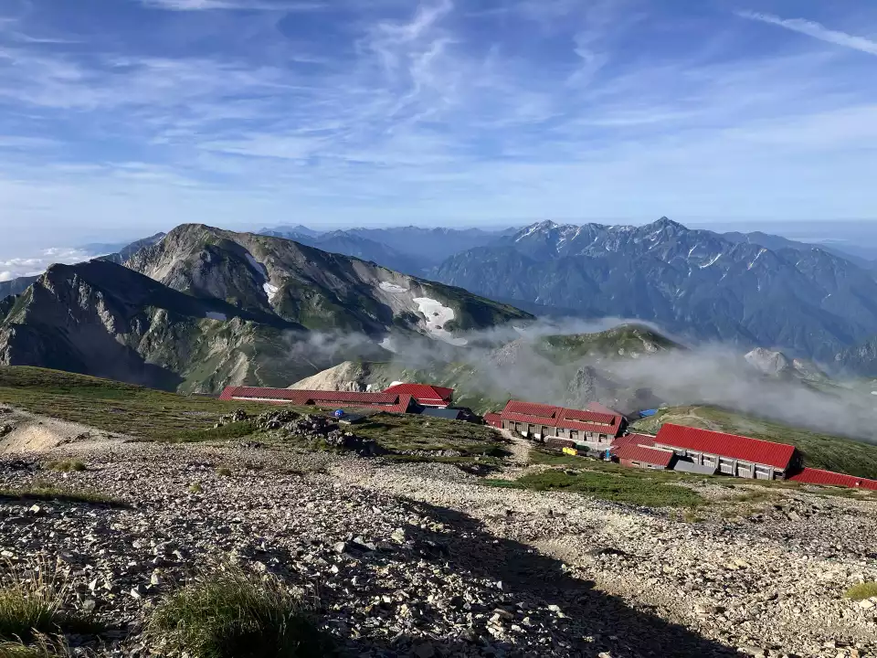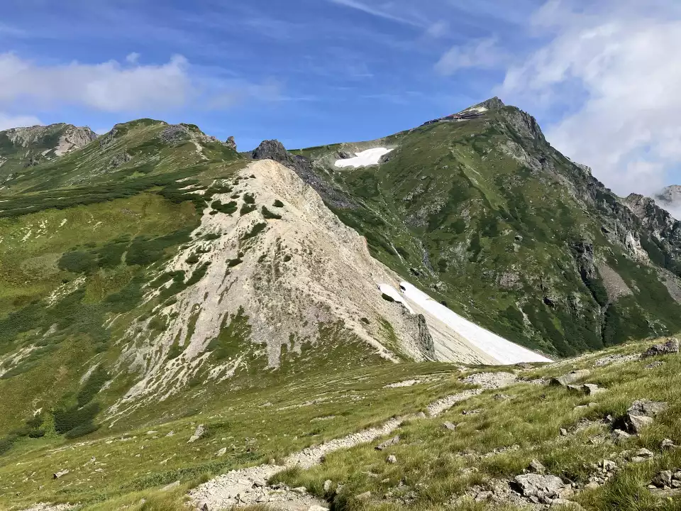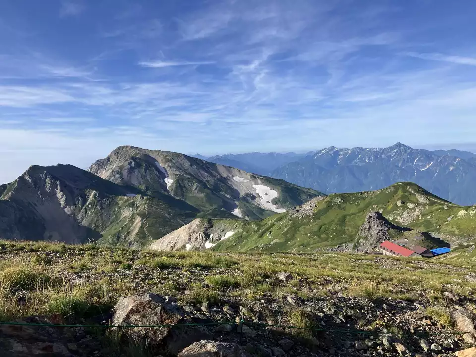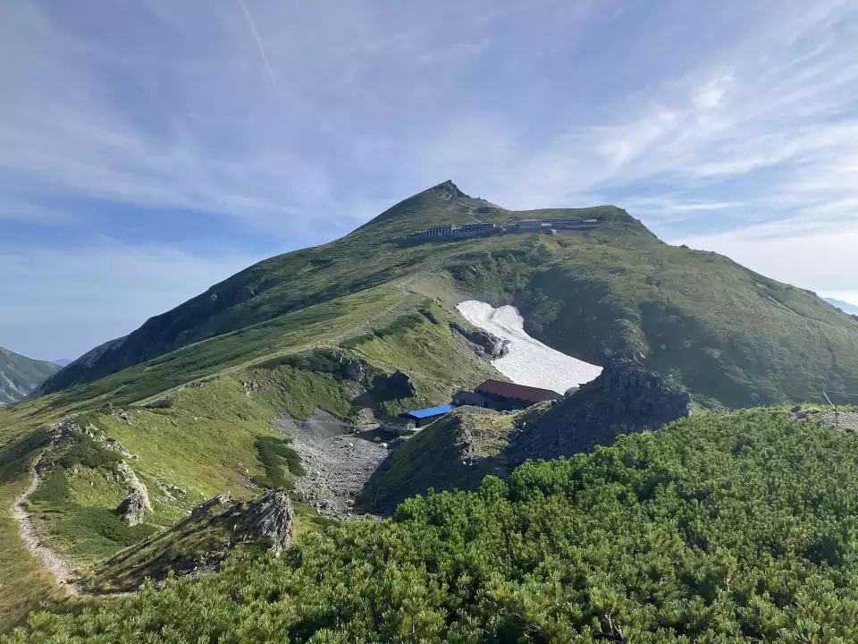 山頂から下った先には白馬山荘、