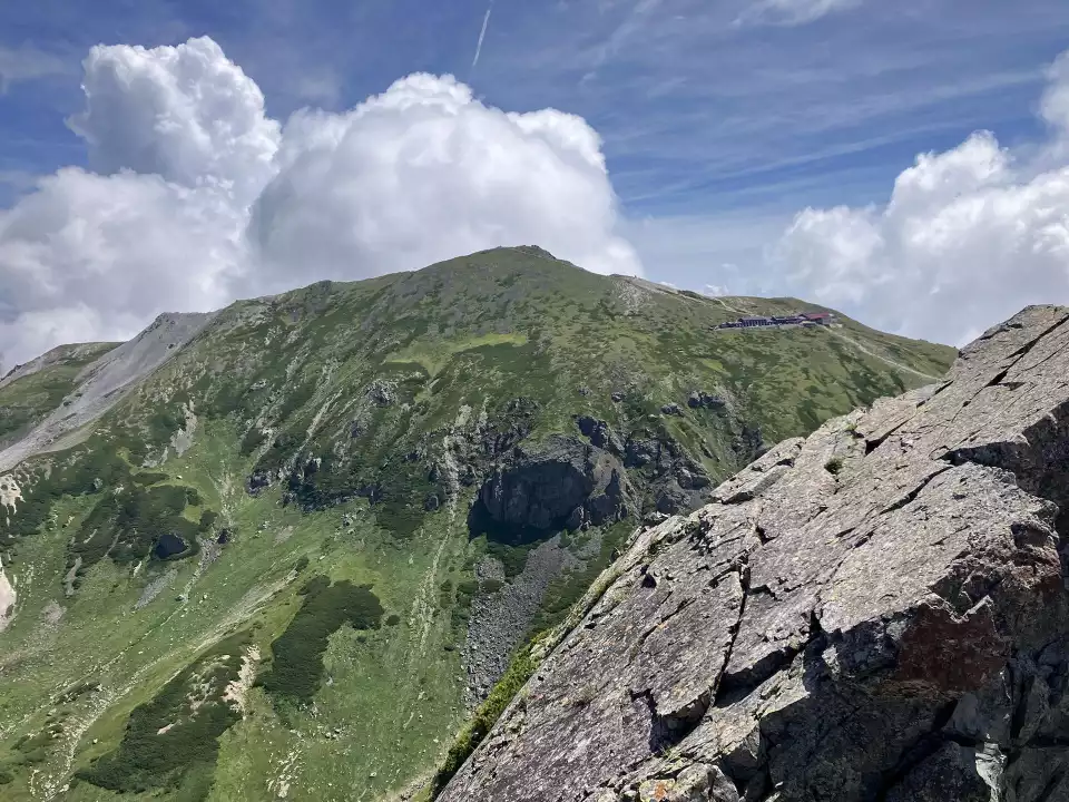 杓子岳と白馬鑓ヶ岳、右に頂上宿舎