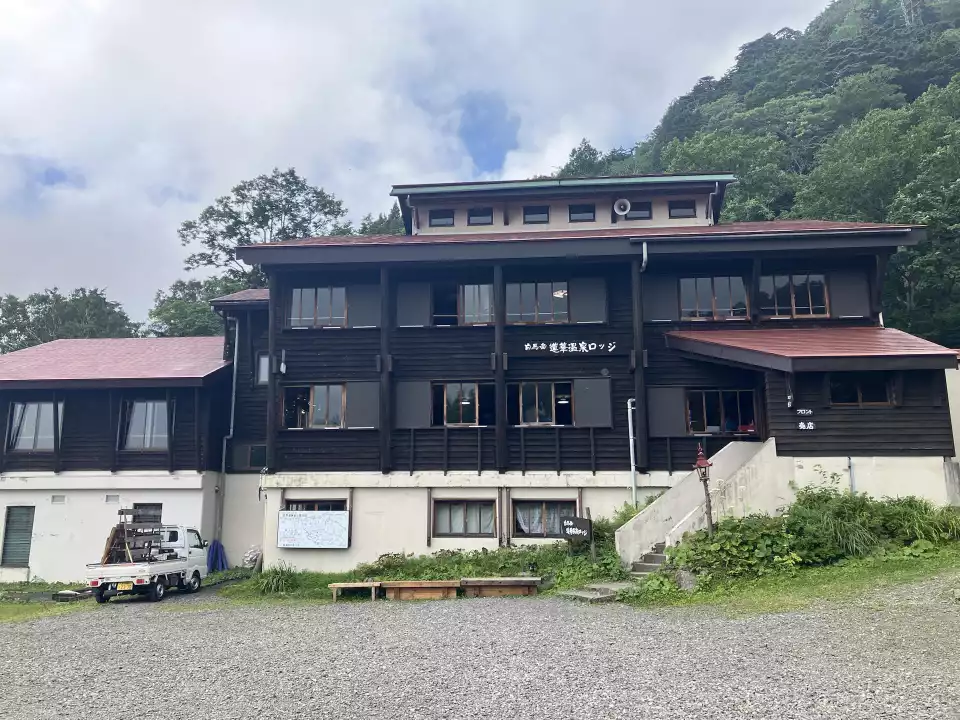 蓮華温泉ロッジへ、駐車場に戻り終了です。