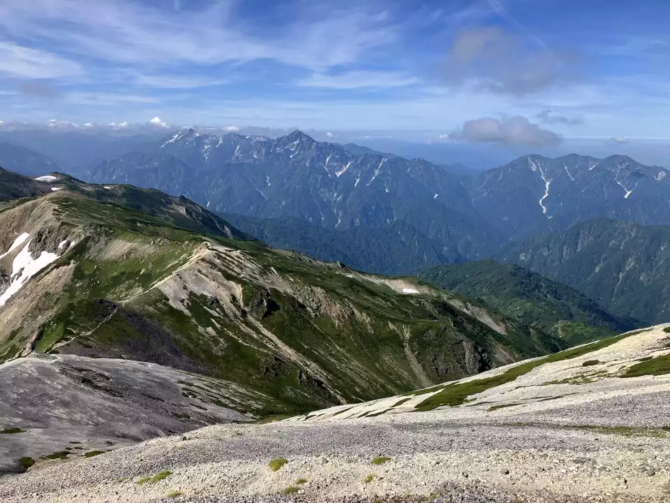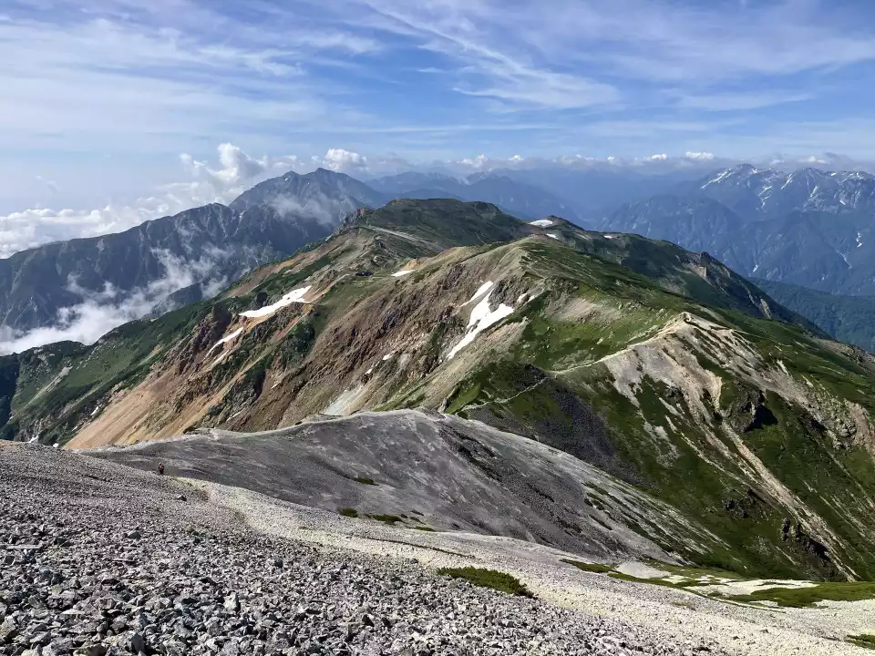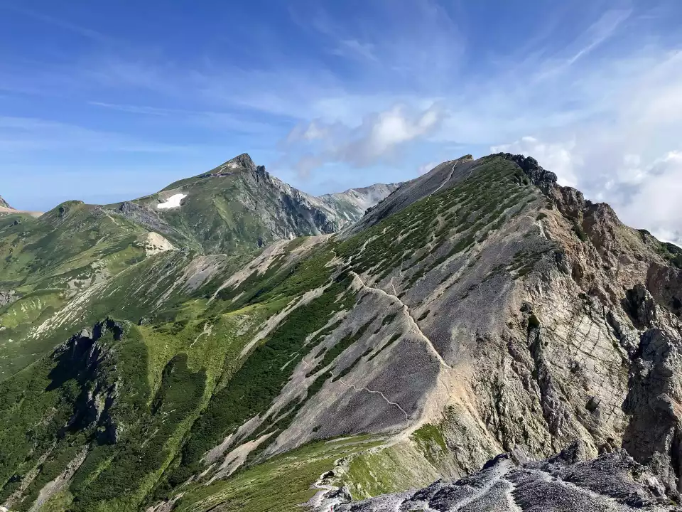 小蓮華山を後に、白馬岳へと続く稜線も素晴らしい。