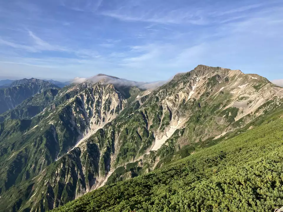 呼子岳〜白馬鑓を西側から望む、こちらは嫋やかな表情。