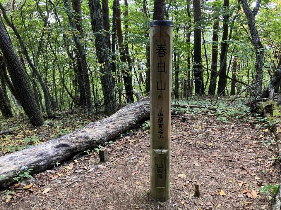 山梨百名山の一座「春日山」、展望の無い静かな山頂です。