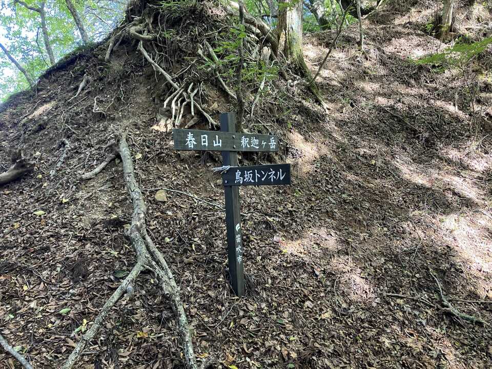 ここは分岐になっており、右へ行くと鳥坂山・左が春日山方面となります。