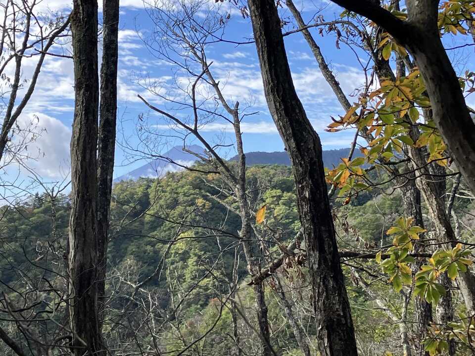 登山口から取付いて、尾根まで出ると木々の間から時々富士山を望めます。