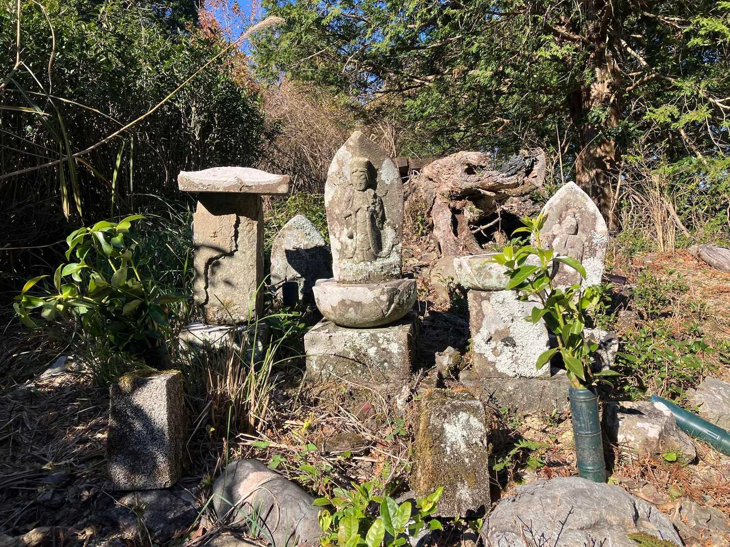 登り口には林道整備の際に集められたと思われる石仏群があります。