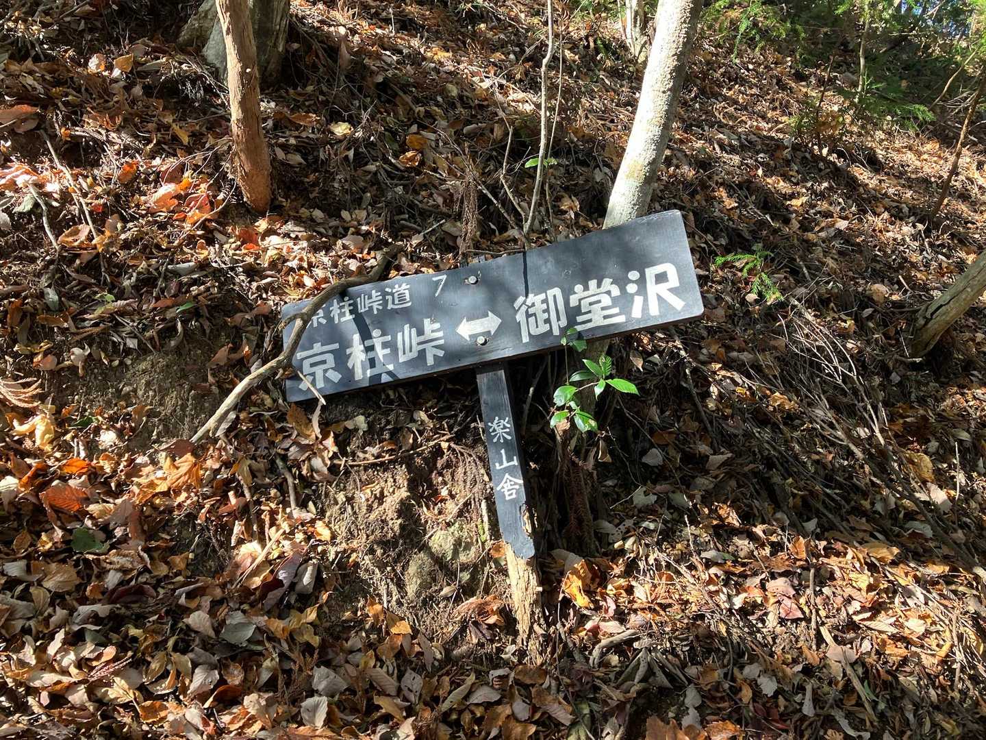 京柱峠道は所々に案内板がありますが、少し踏み跡が薄い所もあります。