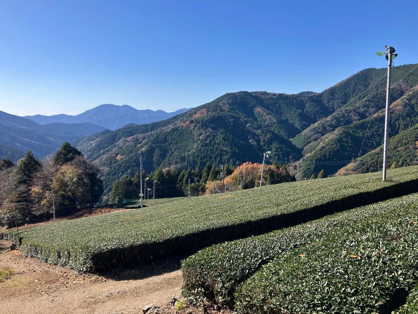 その先、東海自然歩道は一度林道に出て、茶畑沿いを歩く区間がしばらく続きます。