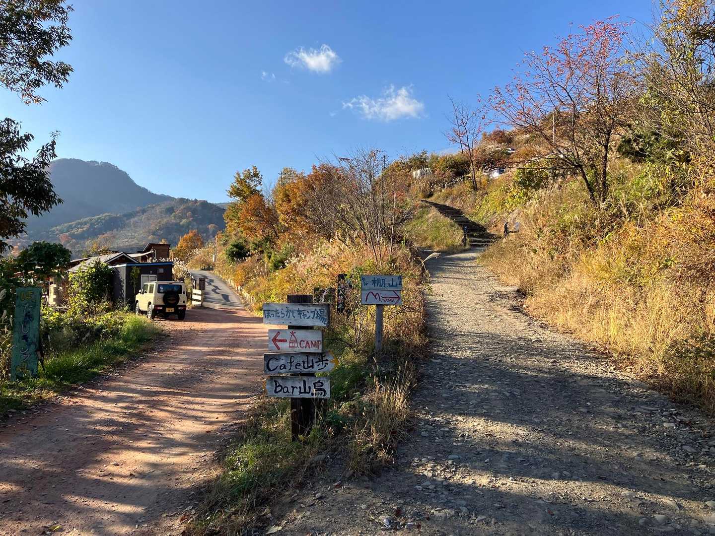 キャンプ場のサイト入口との分岐を右へ。