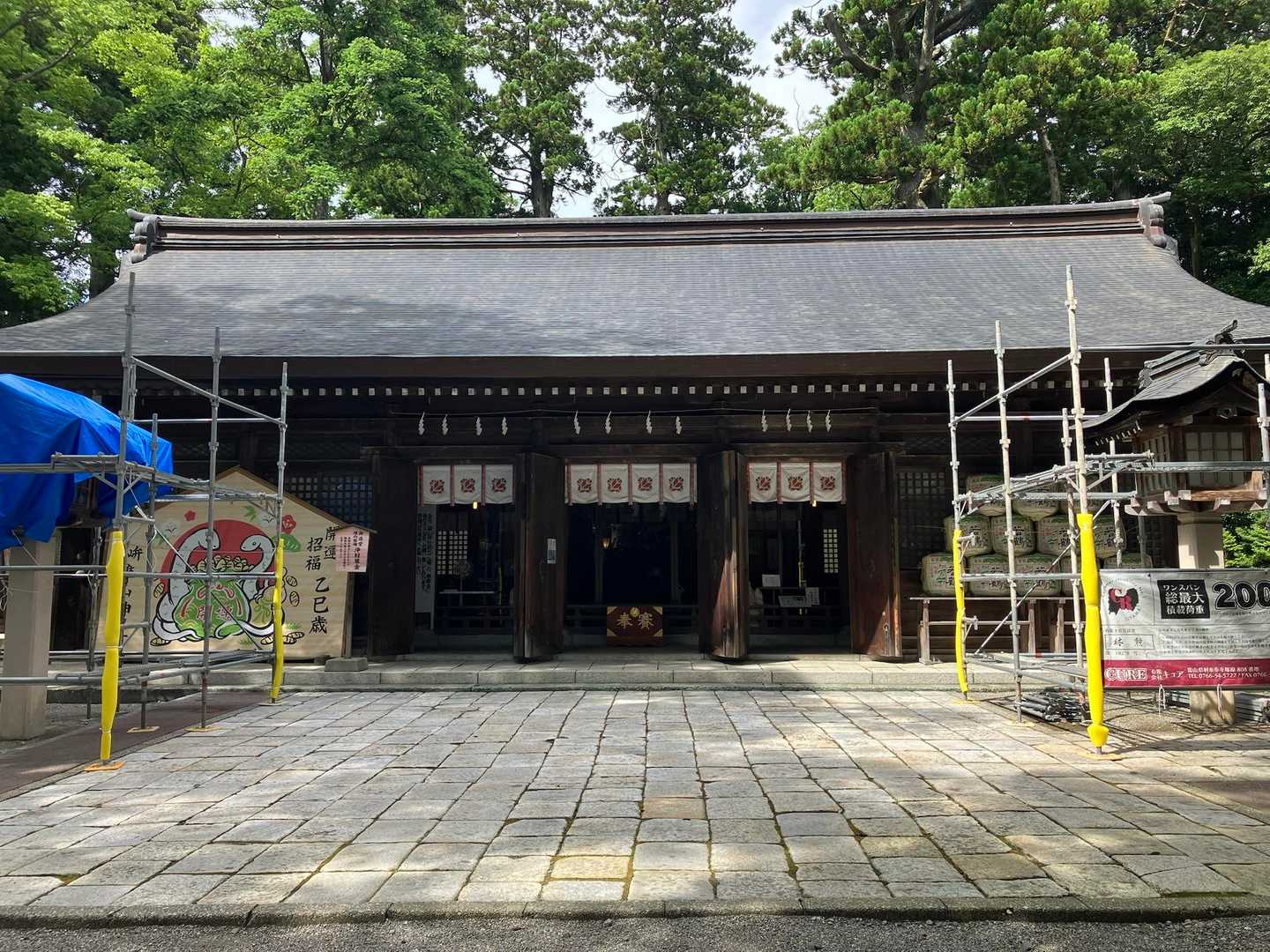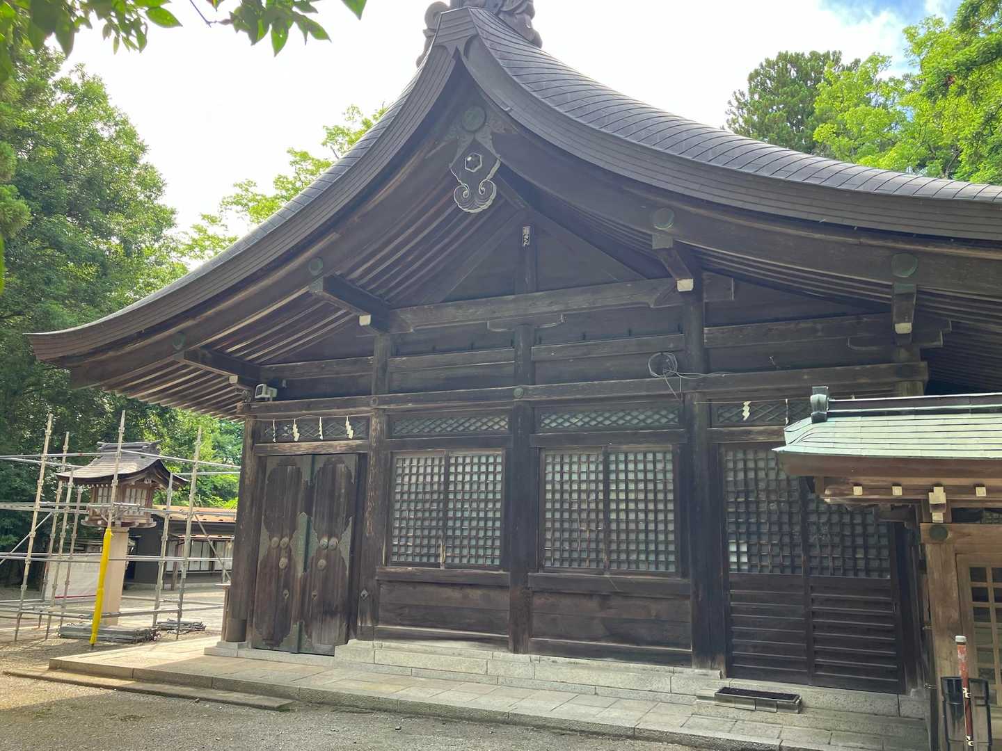 拝殿は祭典・参拝の場であり、年中の諸祭礼や参拝者の祈祷が奉仕される。現在の拝殿は幣殿、神饌所、本殿を囲う透塀、旧社務所、斎館、両神門、石灯篭、春日灯篭などと共に皇紀二千六百年記念事業の一環として昭和15年(1940年)より造営、同17年(1942年)に竣工した。またそれ以前にはこの場所に絵馬堂として現在の拝殿と同規模の建物が建っていた。平成17年(2005年)に拝殿以下の建物は銅板に葺き替えられ、現在の姿となる。