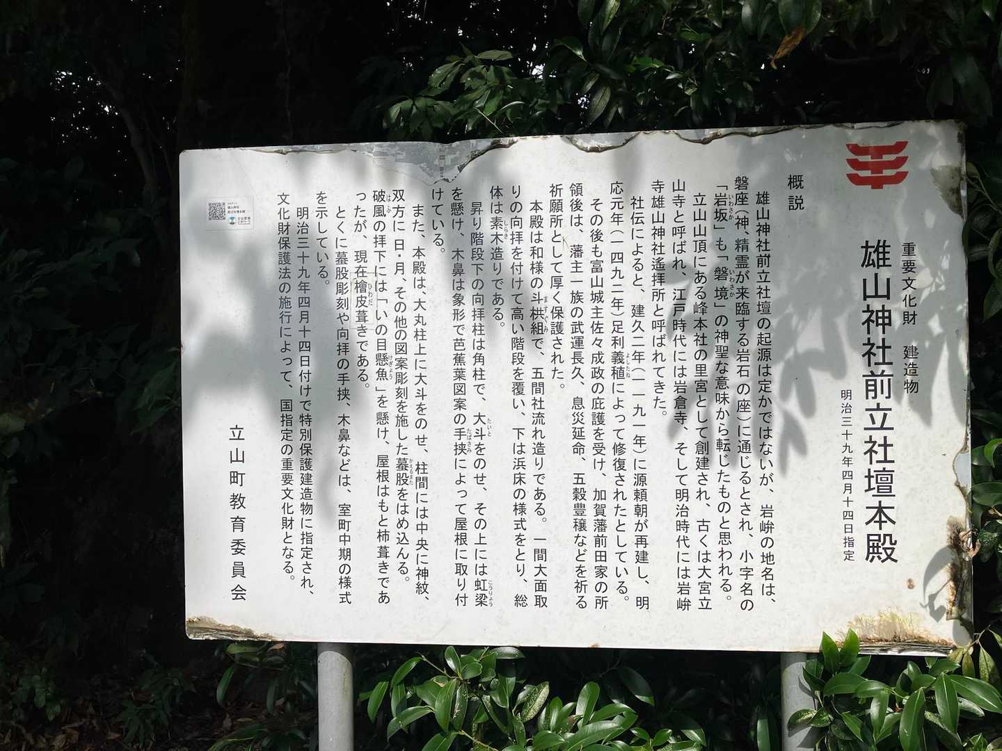 立山の前に立つお社であることから前立社壇と呼ばれています。