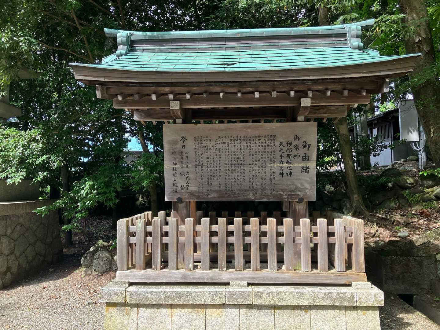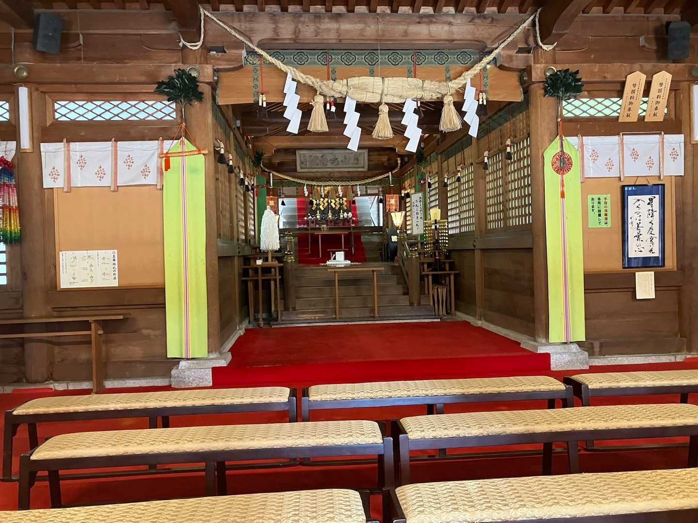 御祭神 応神天皇・神功皇后・稲脊入彦命・菅原利家・佐伯有頼・大國主命・天照大御神・天日鷲命・保食神・大日孁貴命・長白羽命・若年命・積羽八重事代主命・志那津比古命・志那津比女命・天宇受賣命
